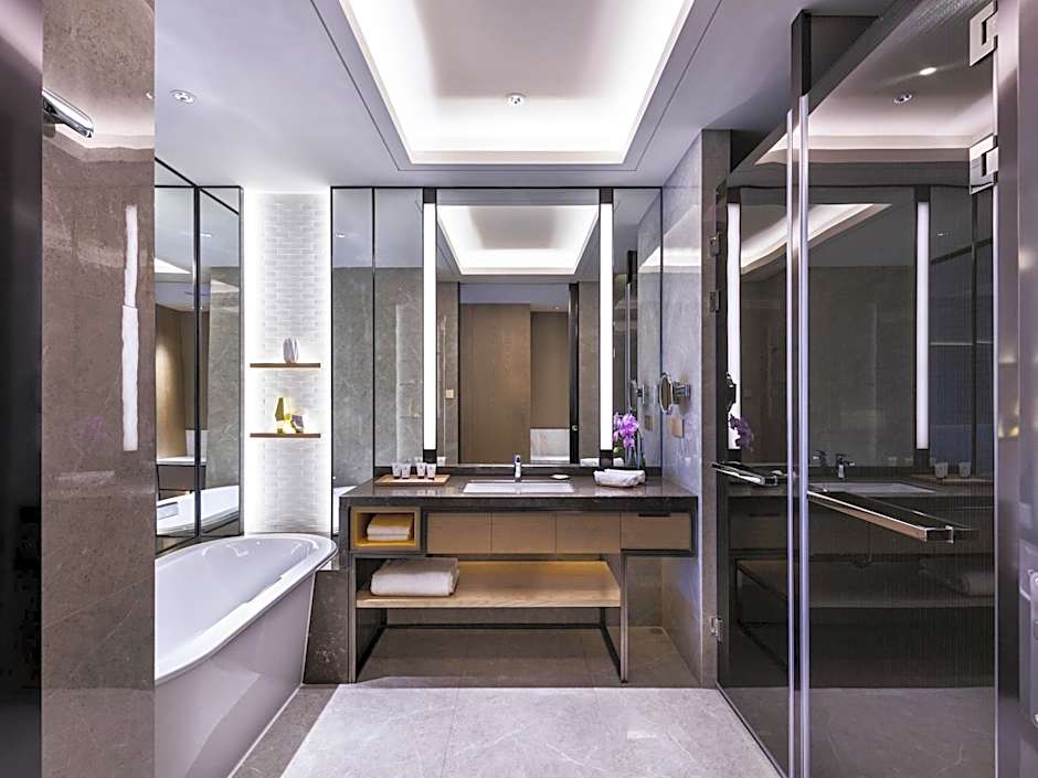 +1 (888) 385-8465Tervetuloa Grand Mercure Shanghai Lingangiin, jossa ylellisyys kohtaa mukavuuden Shanghain sydämessä! Tämä loistelias viiden tähden hotelli toivottaa sinut tervetulleeksi kutsuvaan ilmapiiriinsä ja huippuluokan palveluihinsa — täydellinen sekä rentoutumiseen että seikkailuun. Sijaiten osoitteessa No 288 Yunying Road Fengxianin alueella olet vain kivenheiton päässä, ja pääset kokemaan yhden maailman elävimmistä kaupungeista — ilman vilkkaan keskustan melua, joka on 29,1 mailia päässä!